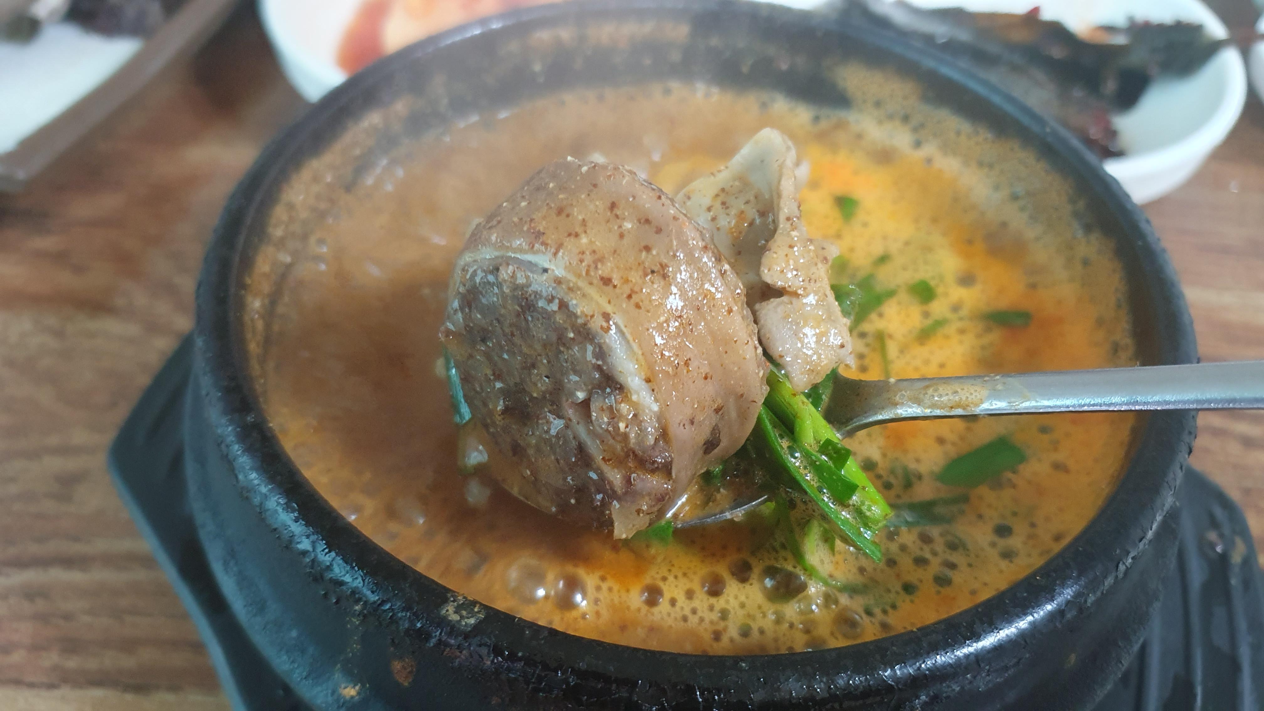 드디어 나온 순대국입니다. 이 안에도 순대가 들어가 있긴하지만 저에게는 간의 기별도 안가는 양이라 별도로 순대한접시를 시킨것이었죠.ㅎㅎ 걸쭉한 국물하며 순대며... 다른곳에서는 볼수없는 비주얼입니다. 일반적인 것과는 다릅니다.