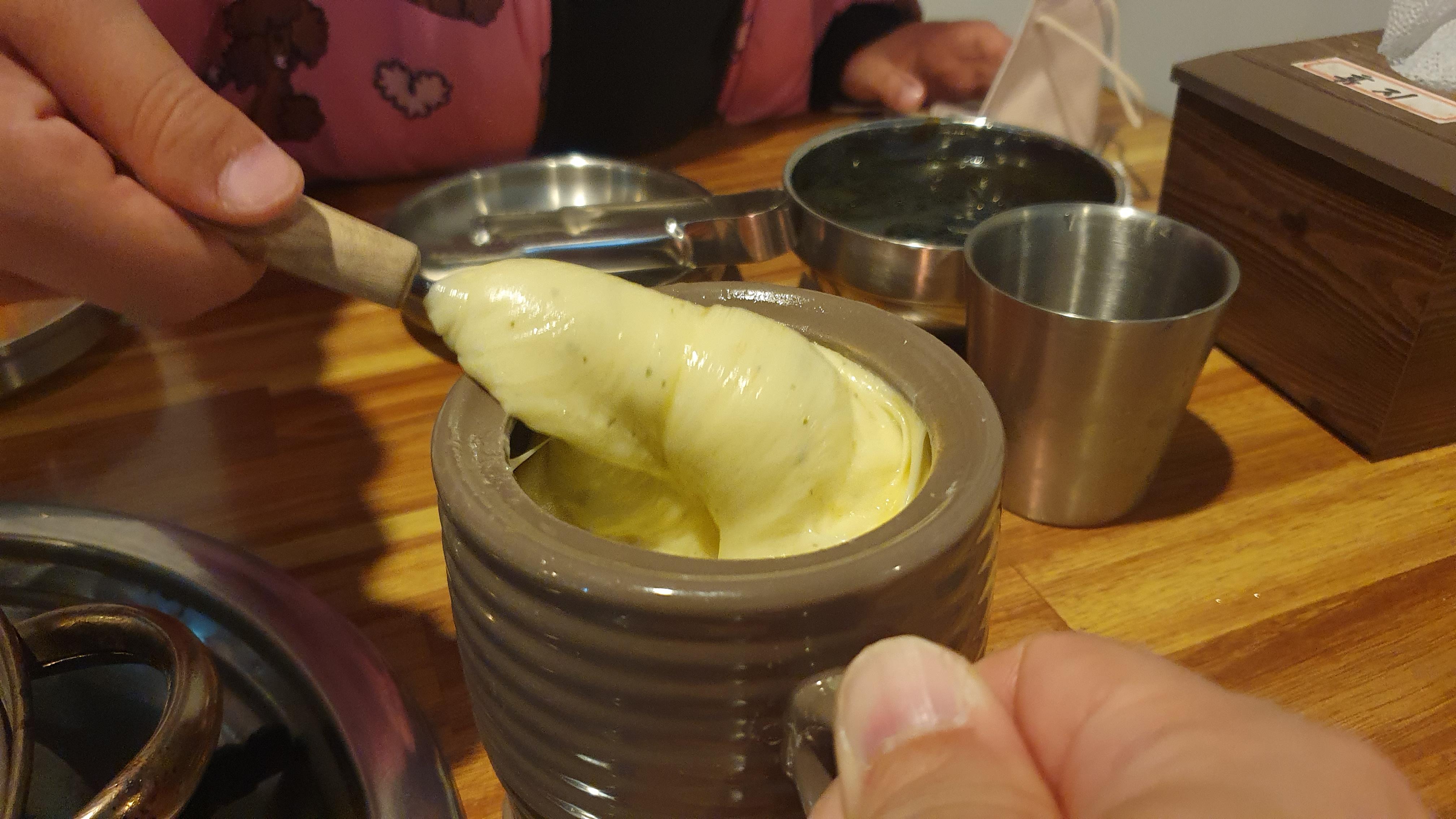 치즈 퐁듀의 경우 자주 섞어주어야 바닥에서 타질않는다고 사장님께서 얘기해주셔서 수시로 치즈를 저어주었다.