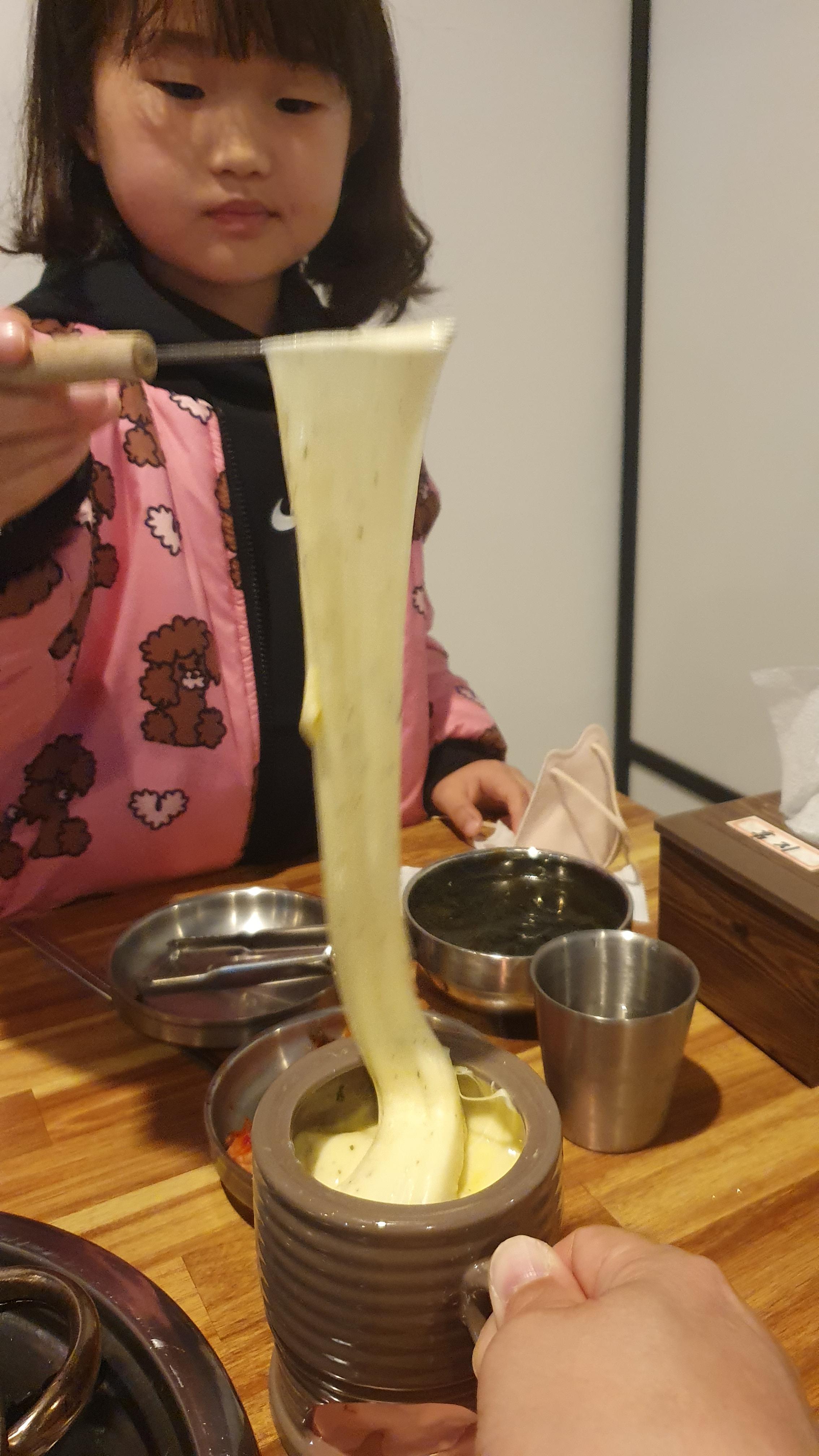 그리고 추가로 모짜렐라 치즈 퐁듀를 주문했다. 왜냐? 아무래도 치즈가 쭈욱~늘어나는 재미를 아이들이 잘 알기때문에 주문했었다. 역시나 슈니는 좋아했다.ㅎㅎ
