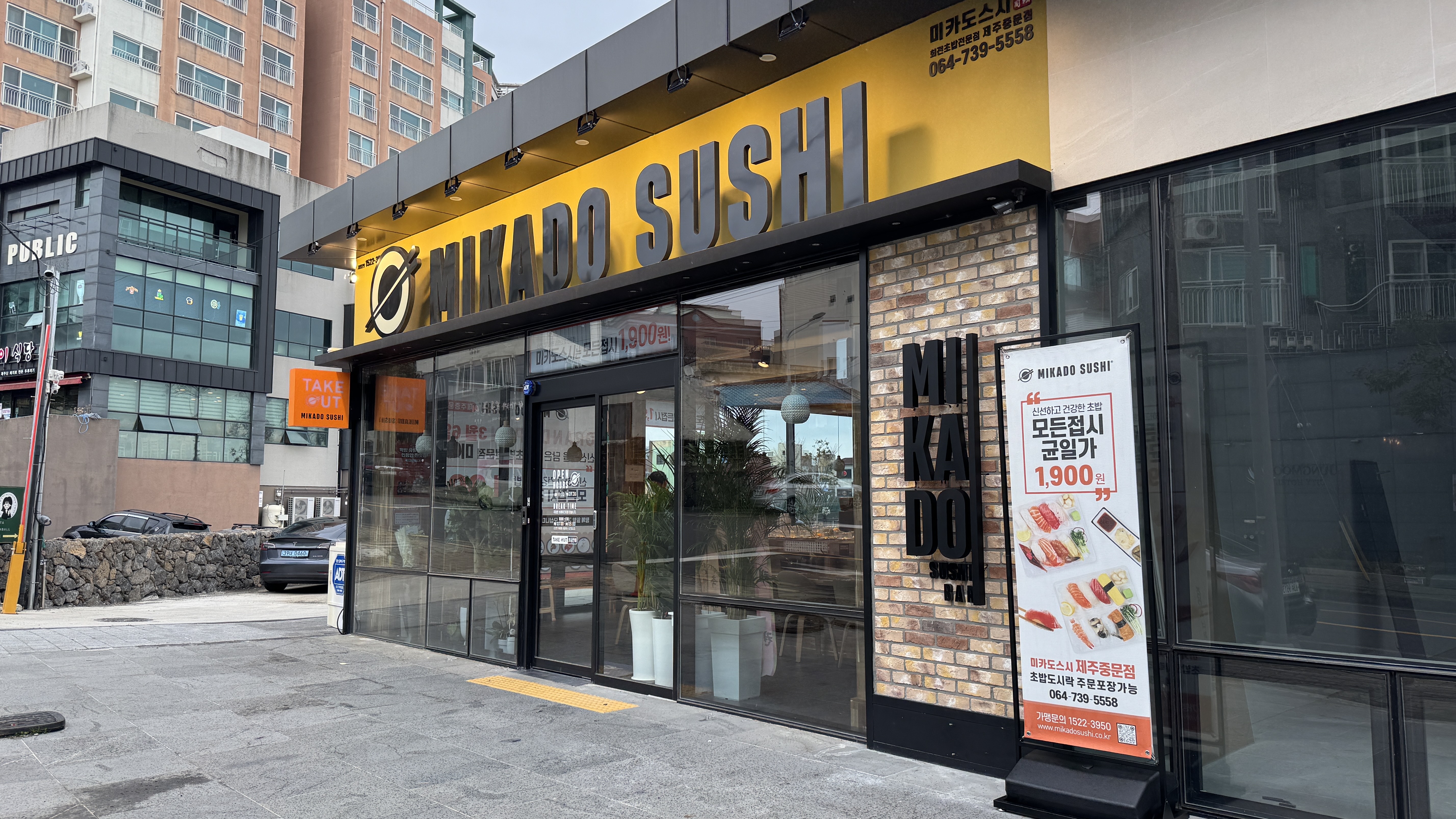 미카도스시 제주중문점은 별도의 전용 주차장을 마련하여 방문객의 주차문제를 한결 편하게 해주었습니다. 저는 주차장이 별도로 있다는걸 모르고 근처 재활용센터앞 주차장에 주차하고 방문하였는데 다음에는 전용 주차장을 이용하려고 합니다.