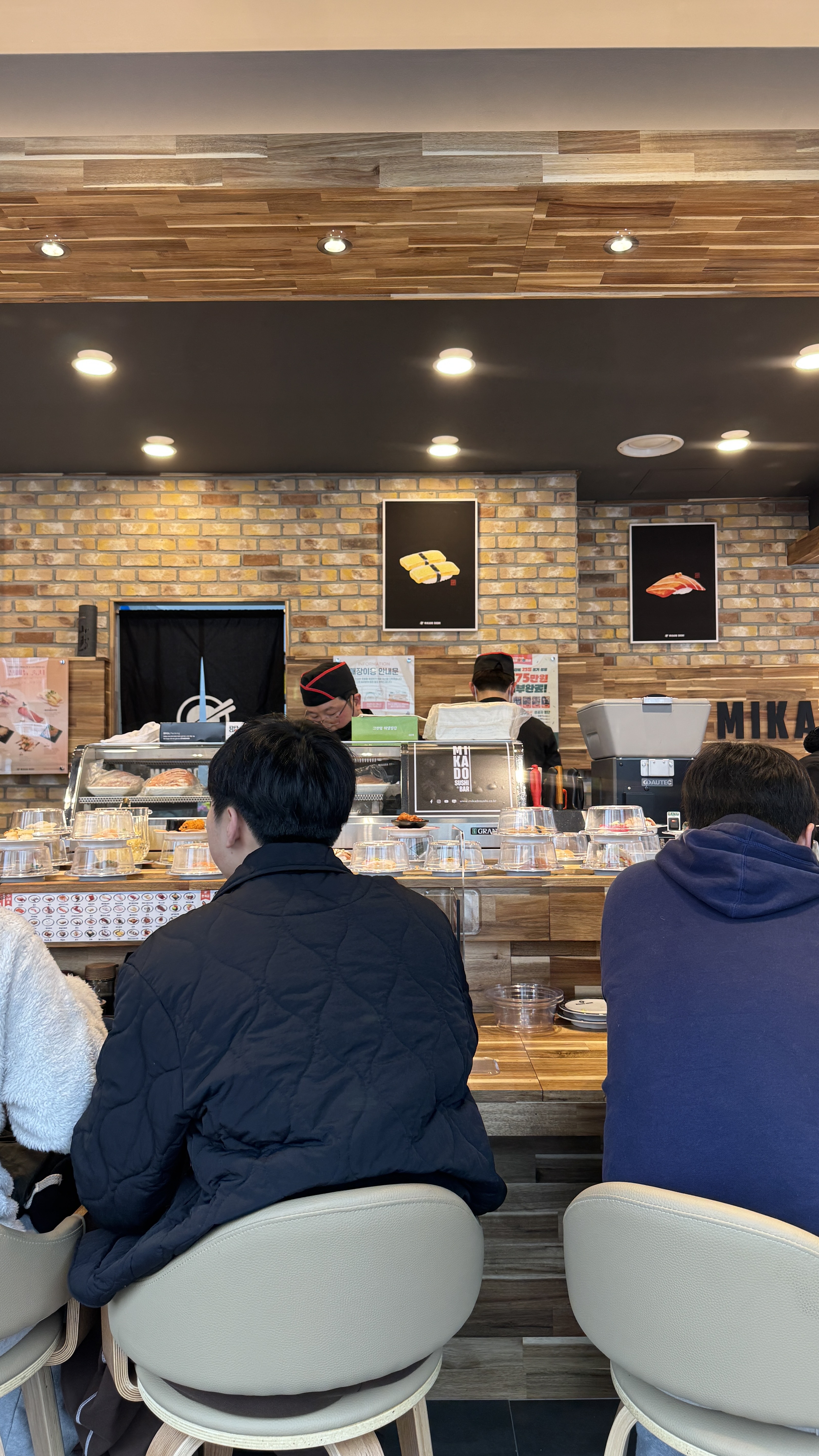 저희 앞에 두팀이 안에서 대기하고 있었습니다. 미카도스시는 실내에 대기할수 있는 의자를 마련해놔서 약 3~4팀(6~8명)정도는